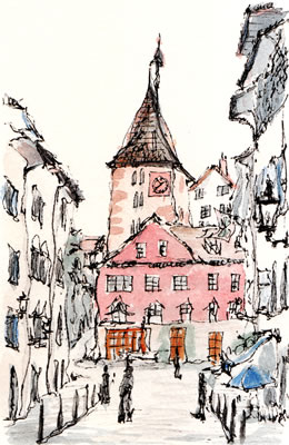リンデンホフの丘、チョコレートの店、刃物の店、毛抜きとパン切りナイフを買った。