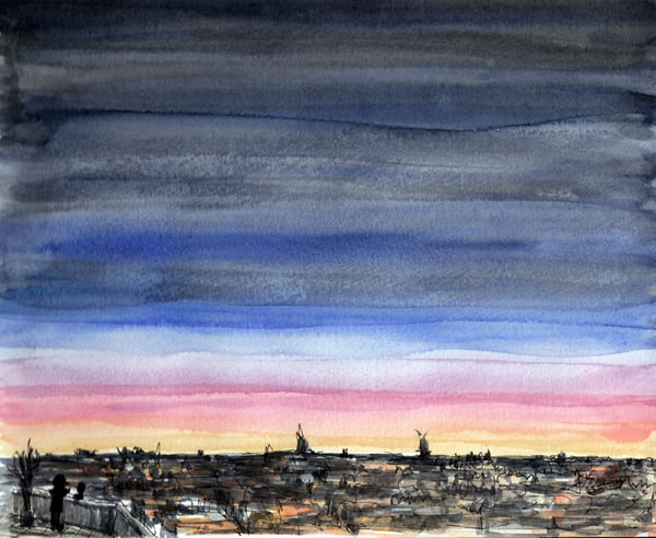 7時半に起き、絵日記を描き、9時15分、久しぶりの朝食を取った。