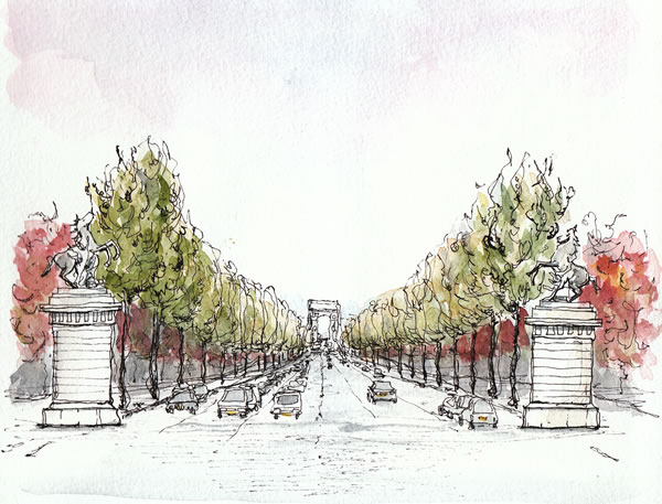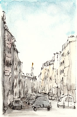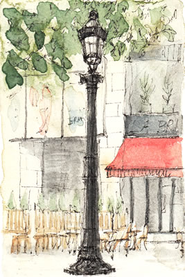 いつもの道を通り、いつもの店でお茶お飲み、いつもの場所でスケッチする。