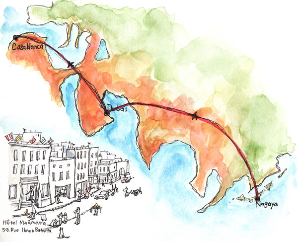 昨日は緊張してお腹が痛かった。モロッコは初めて行く国だから勝手が分からない。