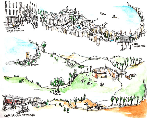 カサブランカからタンジェに行くには、一度メクネス方面に入り、