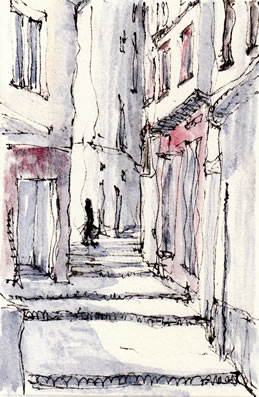部屋に戻り、絵日記を描き、支度をして9時半にホテルを出、駅に向かった。