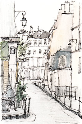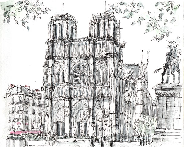 シテ島を通り、ノートルダムのセーヌ川を挟んで裏手にあたる場所でスケッチ。