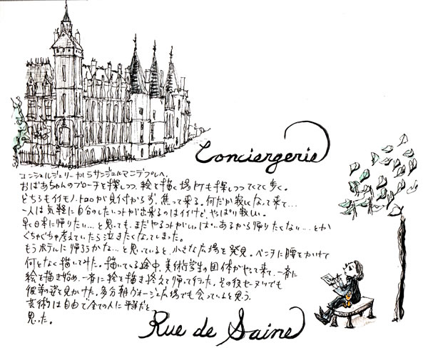 さっきセーヌ川で描こうと思った所は、なんだか臭くて見回すと、ねずみが2匹お亡くなりになっていた。